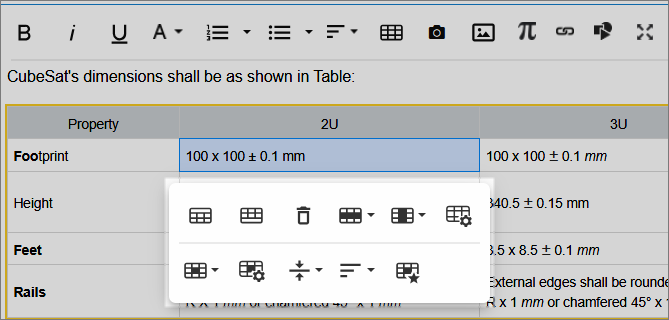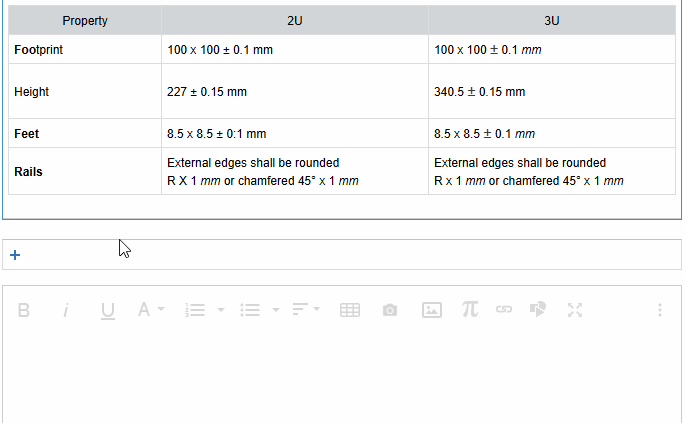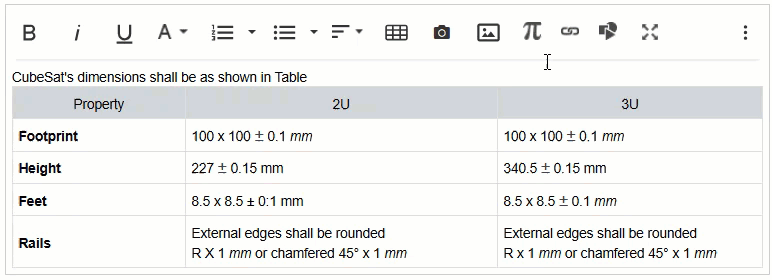 The Rich Text Editor allows you to insert mathematical formulas using LaTeX syntax directly into any rich text field, useful for scientific, engineering, or calculation-based requirements.