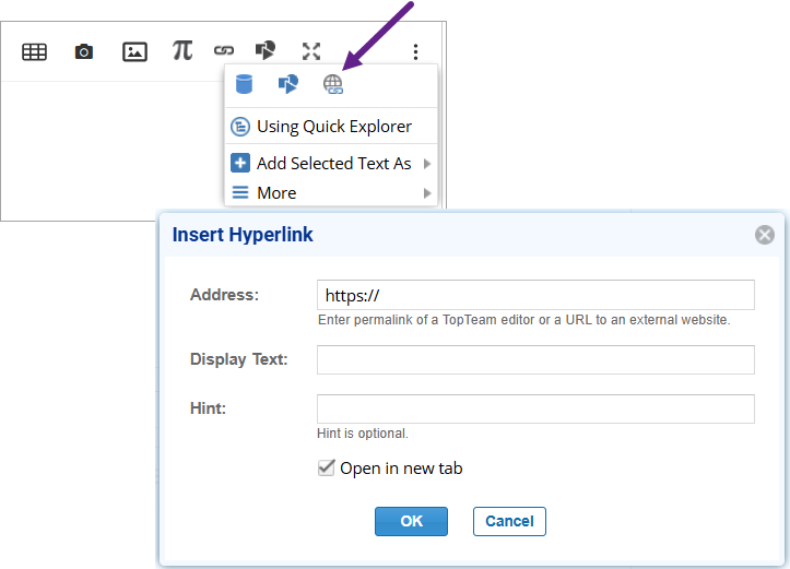 - Click Insert Record Link from the toolbar.