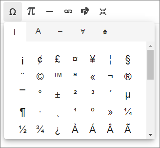 - Click Insert Special Characters from the full toolbar.