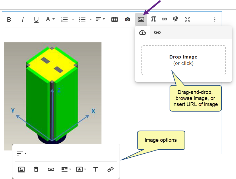 - Use drag-and-drop, browse image or insert image URL.