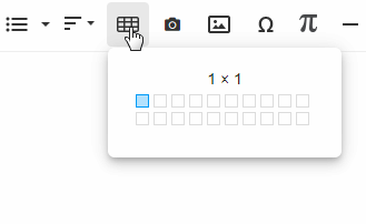Use the Insert Table icon to choose a layout.